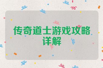 传奇道士游戏攻略详解