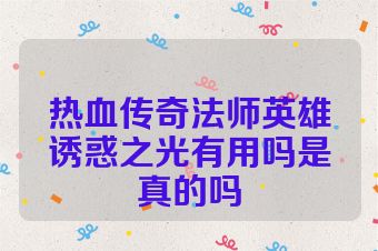 热血传奇法师英雄诱惑之光有用吗是真的吗