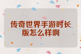 传奇世界手游时长版怎么样啊